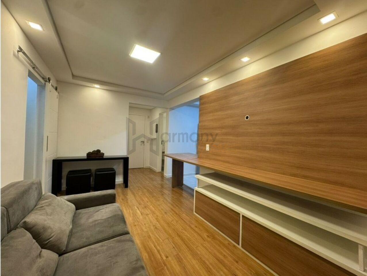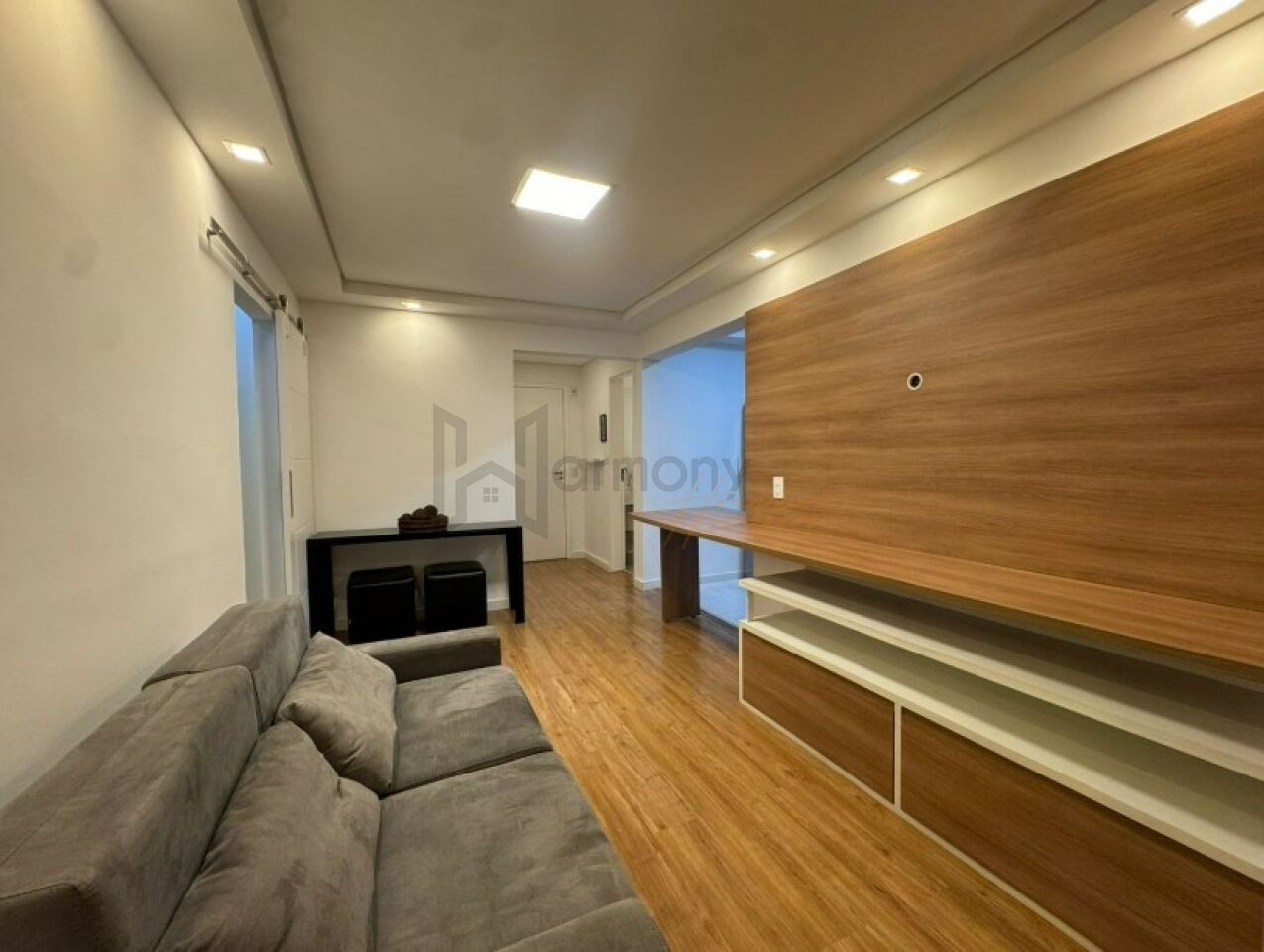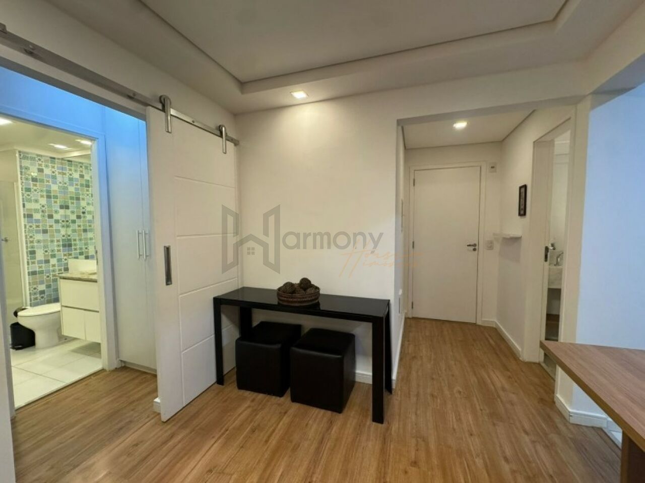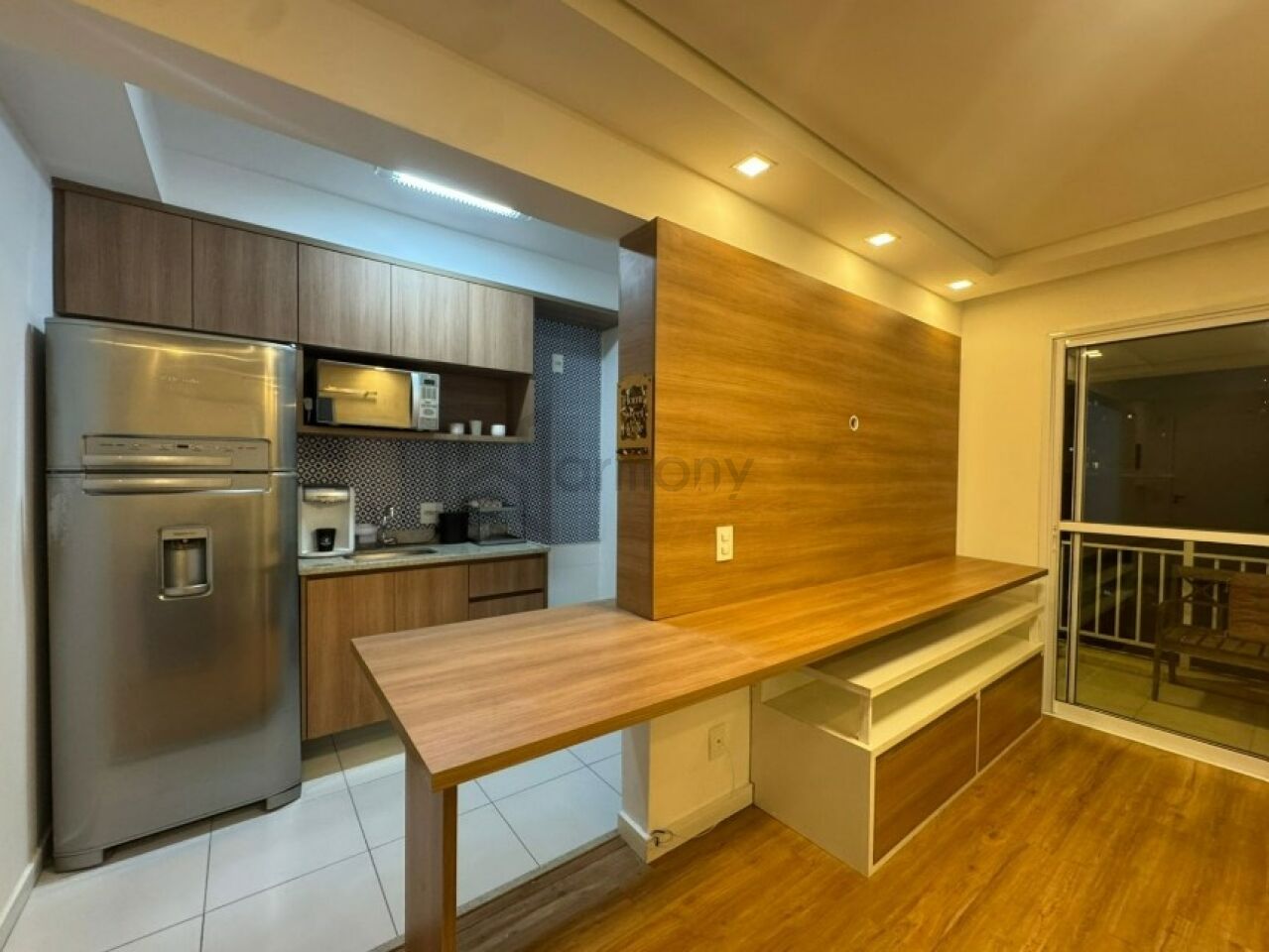 Planta privilegiada com 53m2, 1 suíte, cozinha americana integrada com a sala, área de serviço e varanda. Banheiro completo com ventilação natural. Lavabo completo. Apartamento equipado com armários planejados, geladeira, Piso laminado, lavanderia com lava e seca, sacada com poltronas, sala com sofá e rack e aparador.