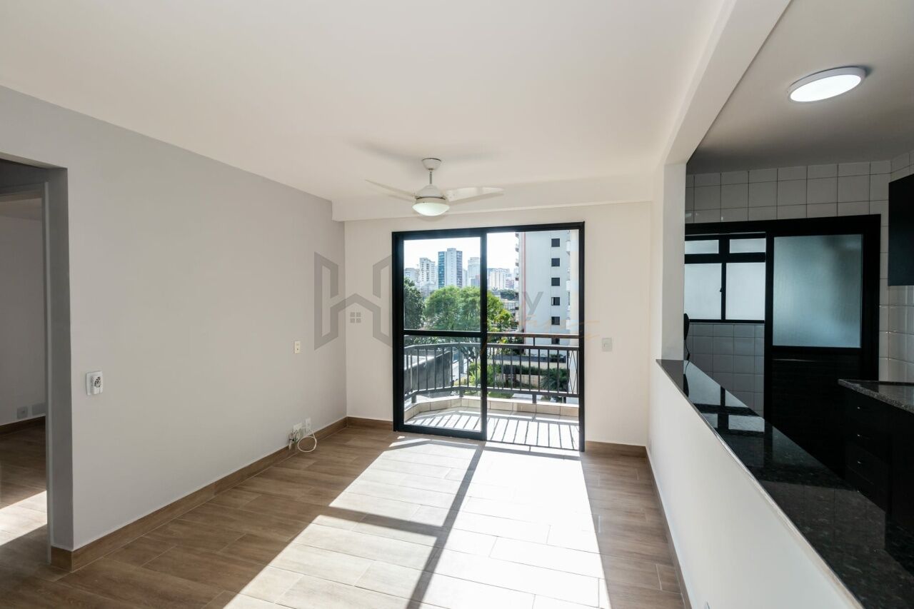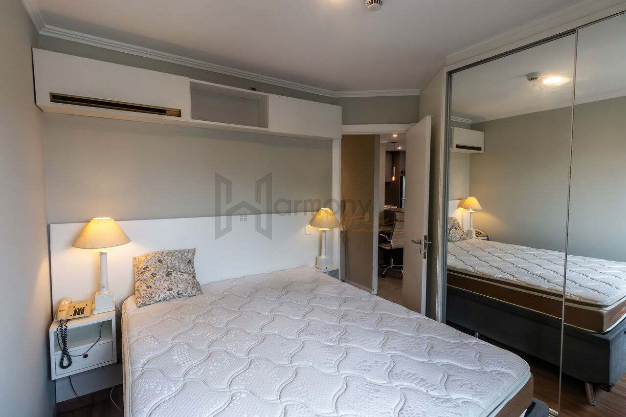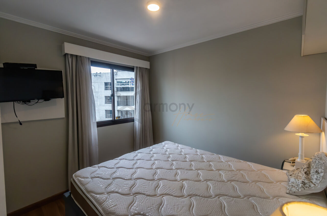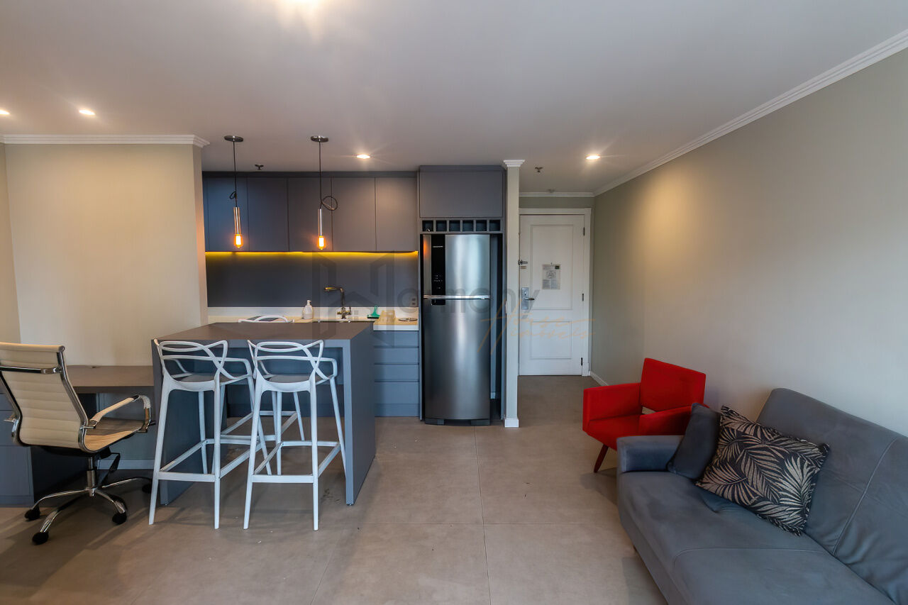Apartamento de 54 m² na Vila Olímpia, completamente reformado e com alto padrão de acabamento. Possui dois dormitórios, varanda silenciosa (voltada para o lado oposto da Av. dos Bandeirantes) e ar-condicionado em todos os ambientes. O imóvel combina conforto, modernidade e praticidade, com móveis planejados e eletrodomésticos de qualidade.